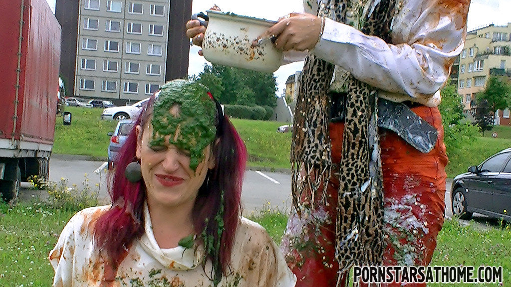 Some chicks just don't know how to act in public...and we love them for it!! These two sexy babes are dressed to impress in lovely blouses, but they have a wet and messy loving side to them that takes over from time to time! On this beginning of the Fall day they decided to have a nice picnic out in the grass next to their local tram stop, but...