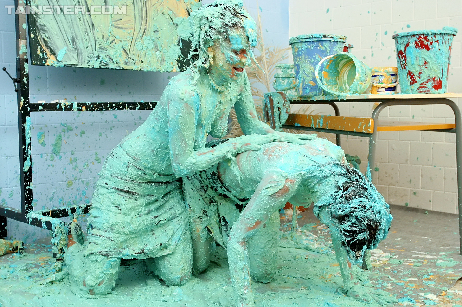 A little private art lesson gets out of hand when a hot student and her sexy teacher seem to prefer painting each others hard bodies rather than focusing on any type of curriculum! They cover each other from head to toe with the thick tempura in the most amazing, abstract ways, and soon find themselves braless, their great tits and hard nips sla...