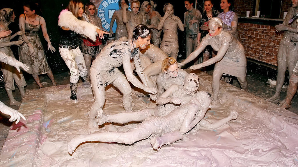 Kia Winston and Dionne Darling star in this dangerous game of cat and mouse in this latest messy mud wrestling match-up! It's one outrageous finale to a muddy wrestling event that leaves the babes gasping for air and covered in slick, gray clay, some with their clothes on, and others wearing only tattered rags after their energy-filled catfights...