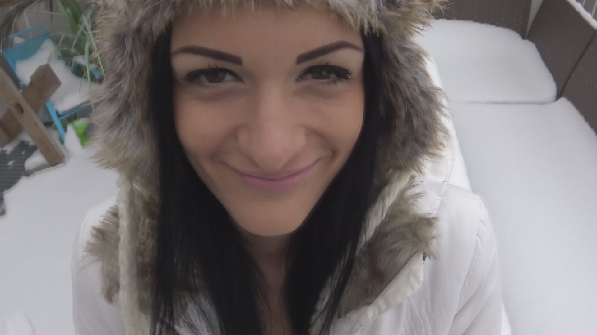 Brrrrr....draussen ist es bitter kalt. Zum Glück trage ich einen Mantel...doch gleich sollte mich noch etwas anderes aufwärmen! Der Typ will dass ich seinen Eiszapfen zum schmelzen bringe mit meiner Zunge. Darin bin ich ja schon richtig gut geübt wie ihr wisst ;) Nach dem heissen gebläse rammt er mir seinen Stängel eiskalt in meinen Arsch. So ei...